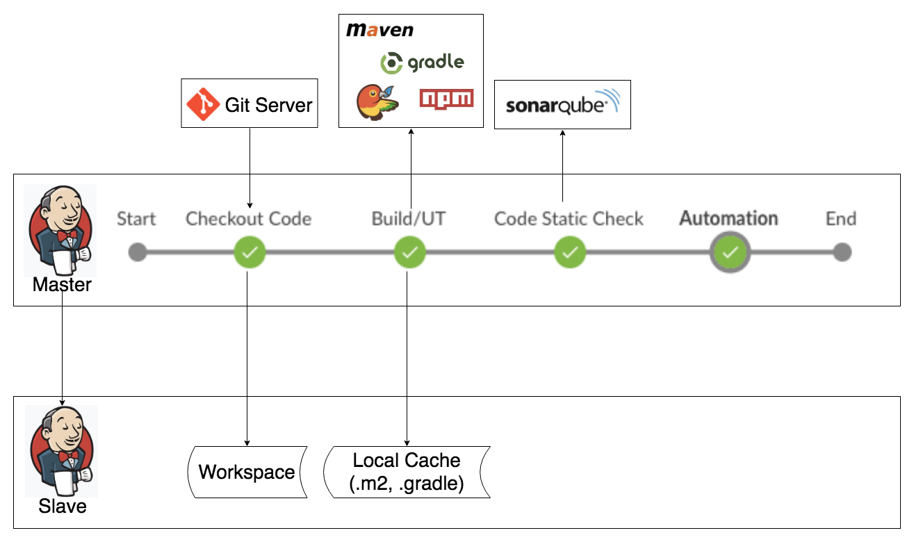 • 在“Code Static Check”阶段,如果使用的是SonarQube,则不会产生冲突,因为每一个并发执行的build都会在SonarQube服务端产生一个独立的分析,所以不会相互干扰。但如果是其它的静态代码分析服务器,可能就需要具体情况,具体对待。