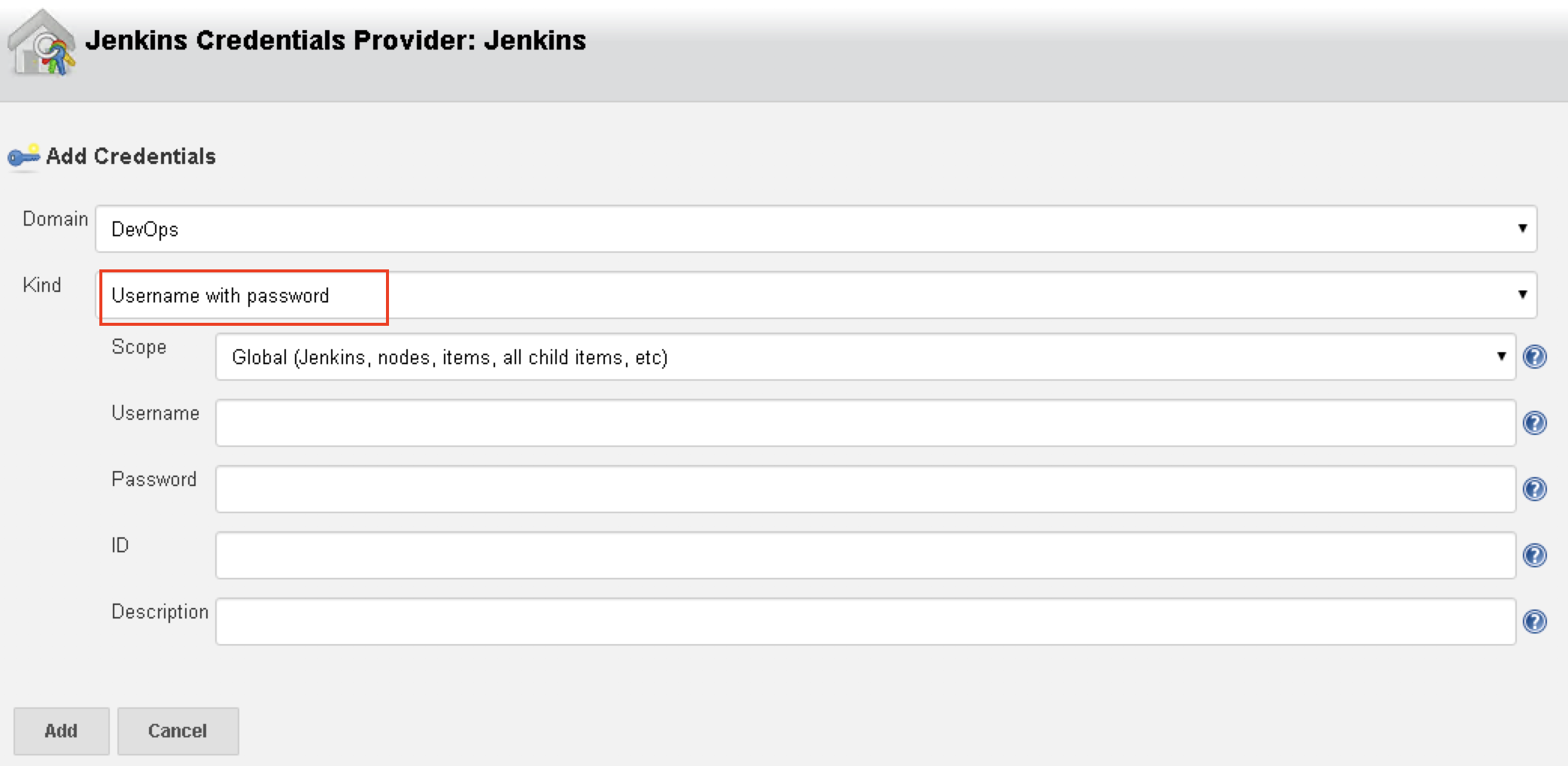 3. 创建”Username with password”类型的凭证,用户名和密码是有足够权限的Github账号和密码