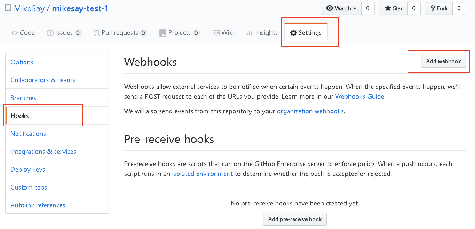 1. 打开Git仓库设置页面,点击Hooks -> Add webhook