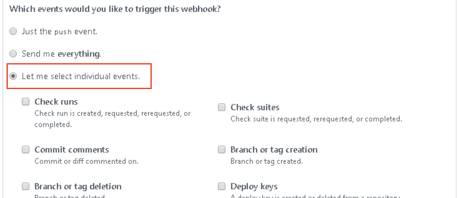 3. 选择”Let me select individual envents”自定义webhook触发事件