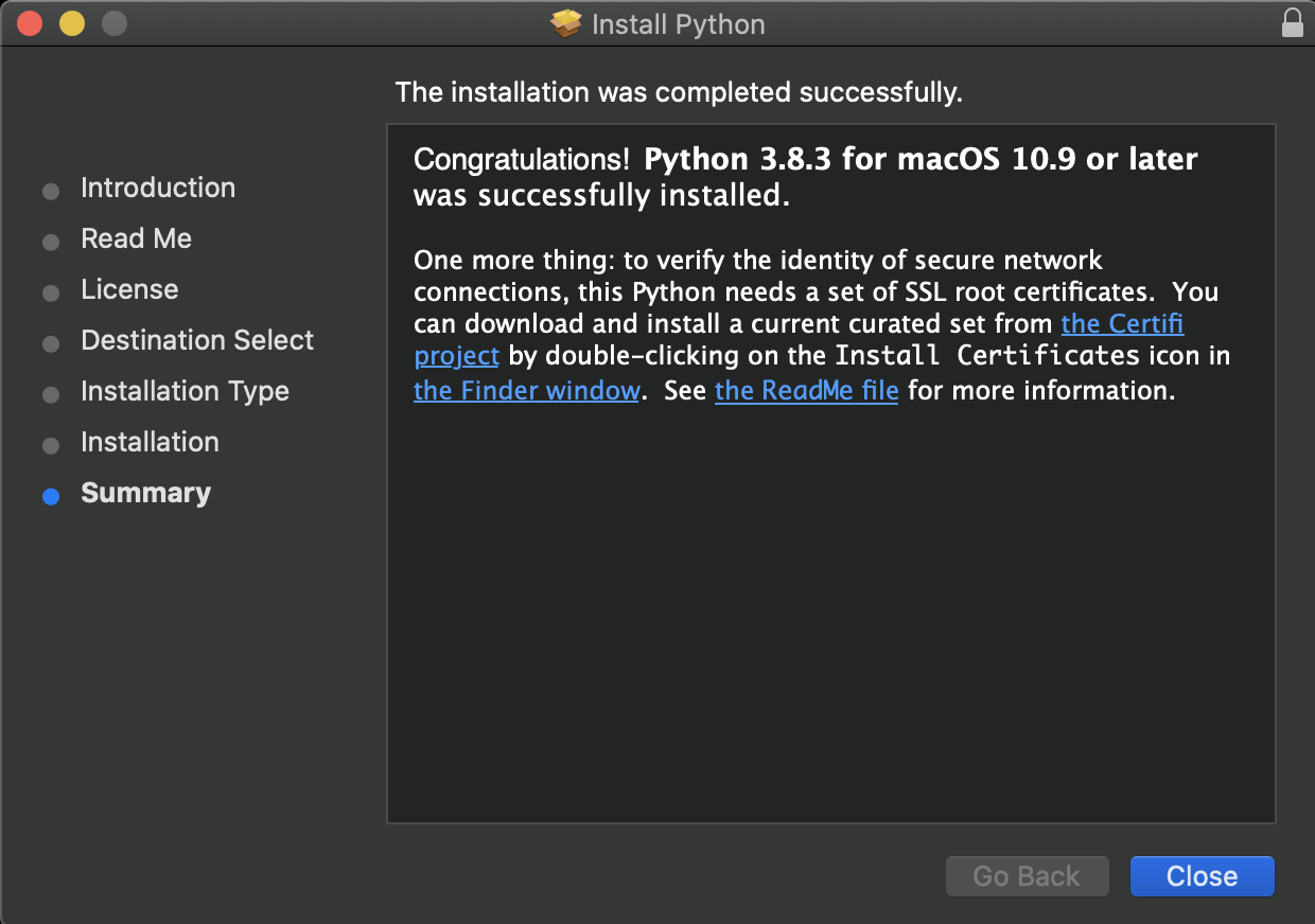 sudo ln -s /Library/Frameworks/Python.framework/Versions/3.8 /Library/Frameworks/Python.framework/Versions/Current