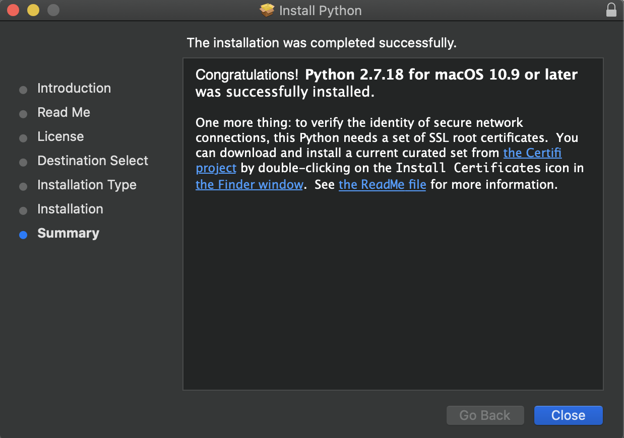 从Python的官网中下载Python的Mac安装包,按照向导缺省安装即可。
