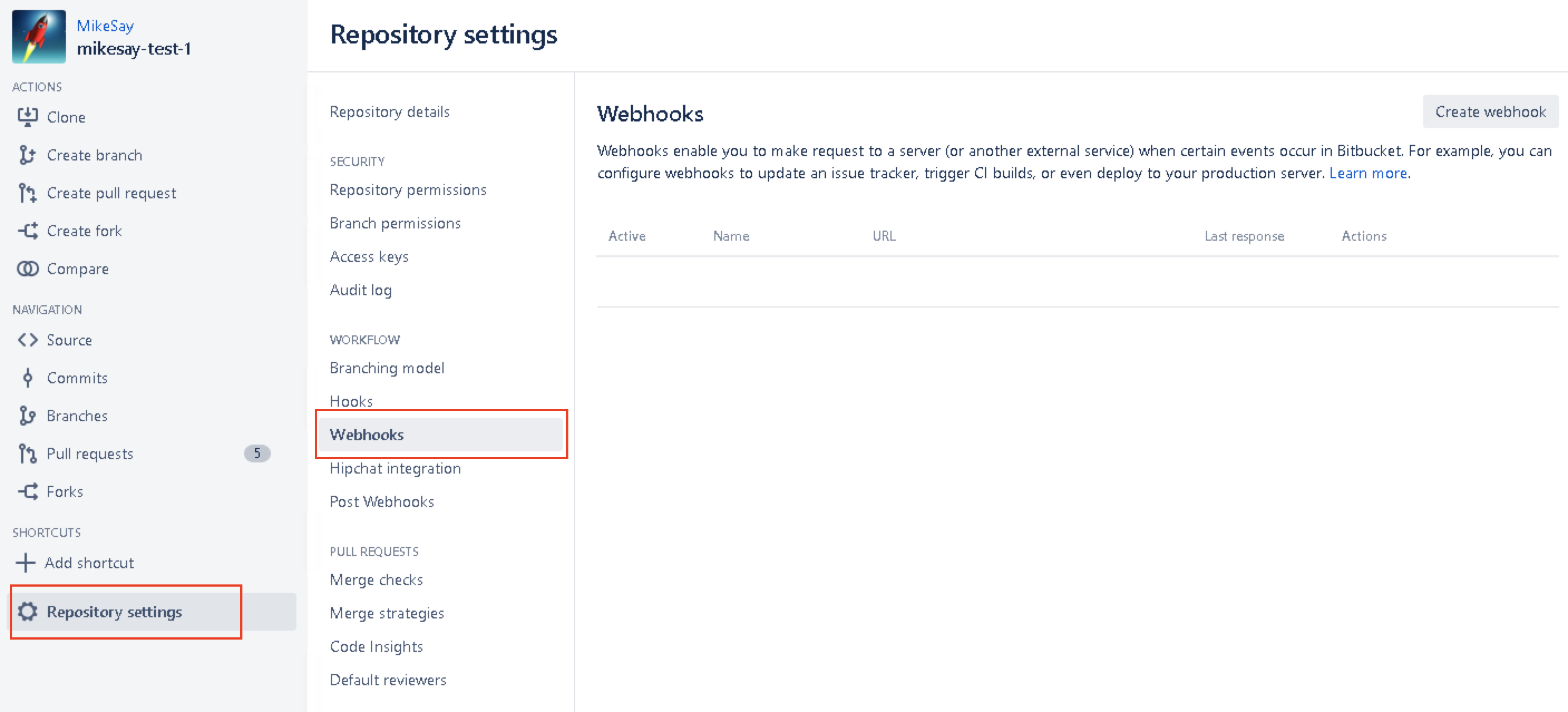 1. 点击”Repository settings” -> “Webhooks”打开Webhooks创建页面