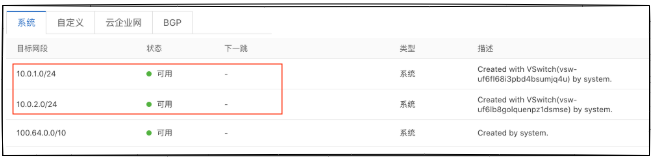 红框中的系统路由规则使两个节点之间路由可达。