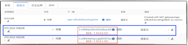 蓝框中的路由规则使流量从ECS-1路由到ECS-2中。ECS-2的路由信息